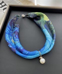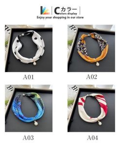 キーワードスカーフ マグネット式 ワンタッチ シルクタッチ 簡単 ネックレス風 レディース ラインストーン 花柄 チェック柄 おしゃれ エレガント 女性用 婦人 シルクタッチスカーフ ヘアバンド マグネット留め具 結ばなくていい 磁気クラスプ付き 万能スカーフ アクセサリー