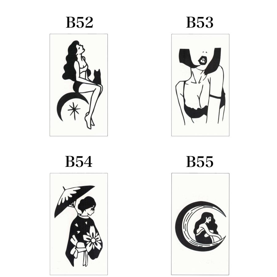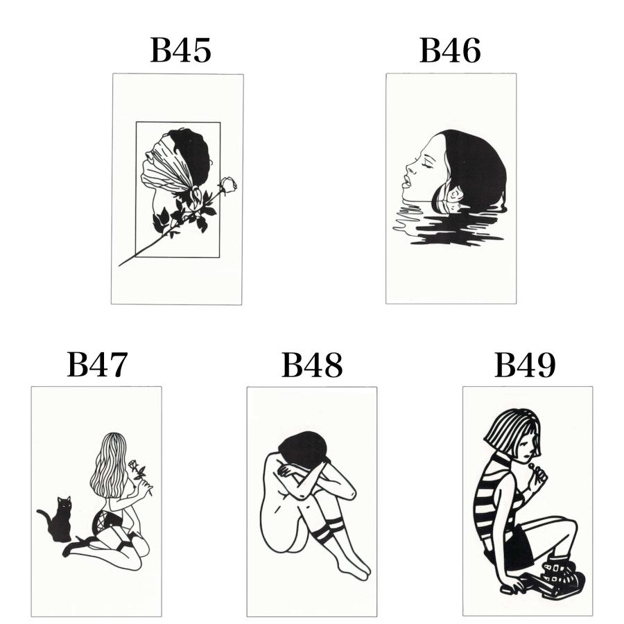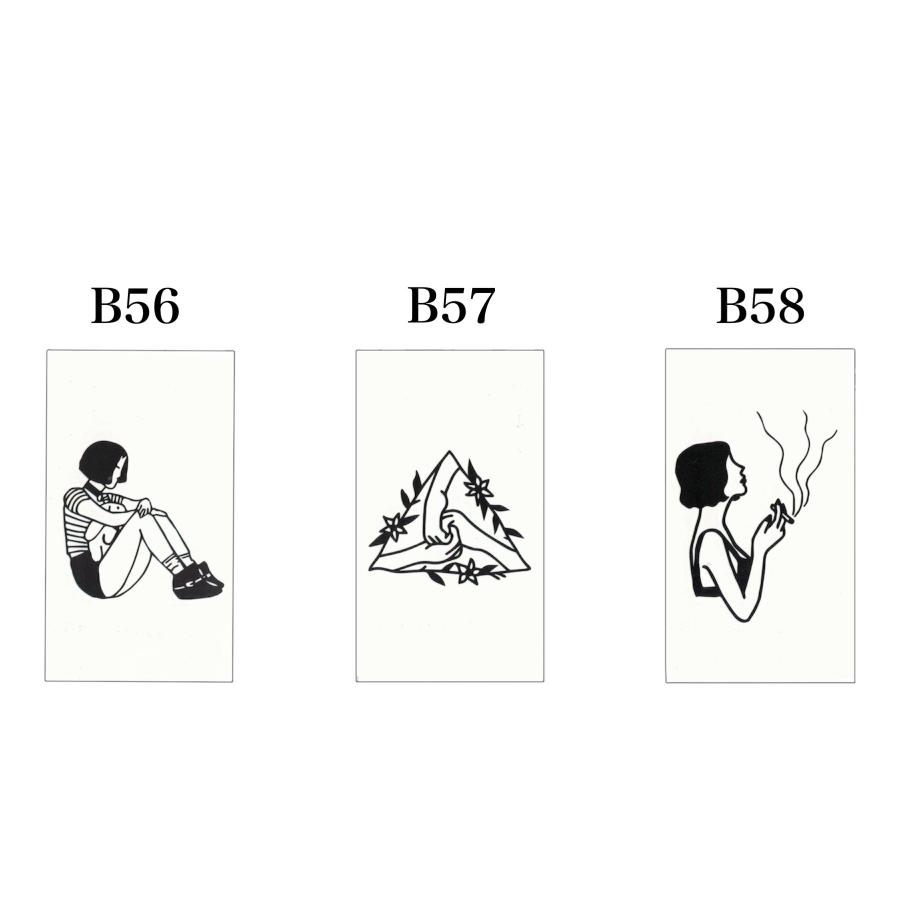 ペンで描いたような独特なモチーフのタトゥーシールです。ちょっぴりサイコパス味がある表情のイラストはなんだかクセになりますし、何枚も集めたくなっちゃいますね。こちらの線画シリーズは他にも種類がございますので下記おすすめからぜひご覧ください。お好みのイラストがきっと見つかるはずです。