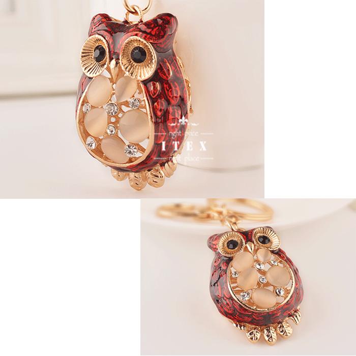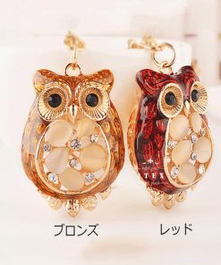 ふくろう 幸福 バッグチャーム ハッピー プレゼント フクロウ キーホルダー 梟 幸運 ストラップ ナスカン付き スワロ ラインストーン ゴールド 鍵 車