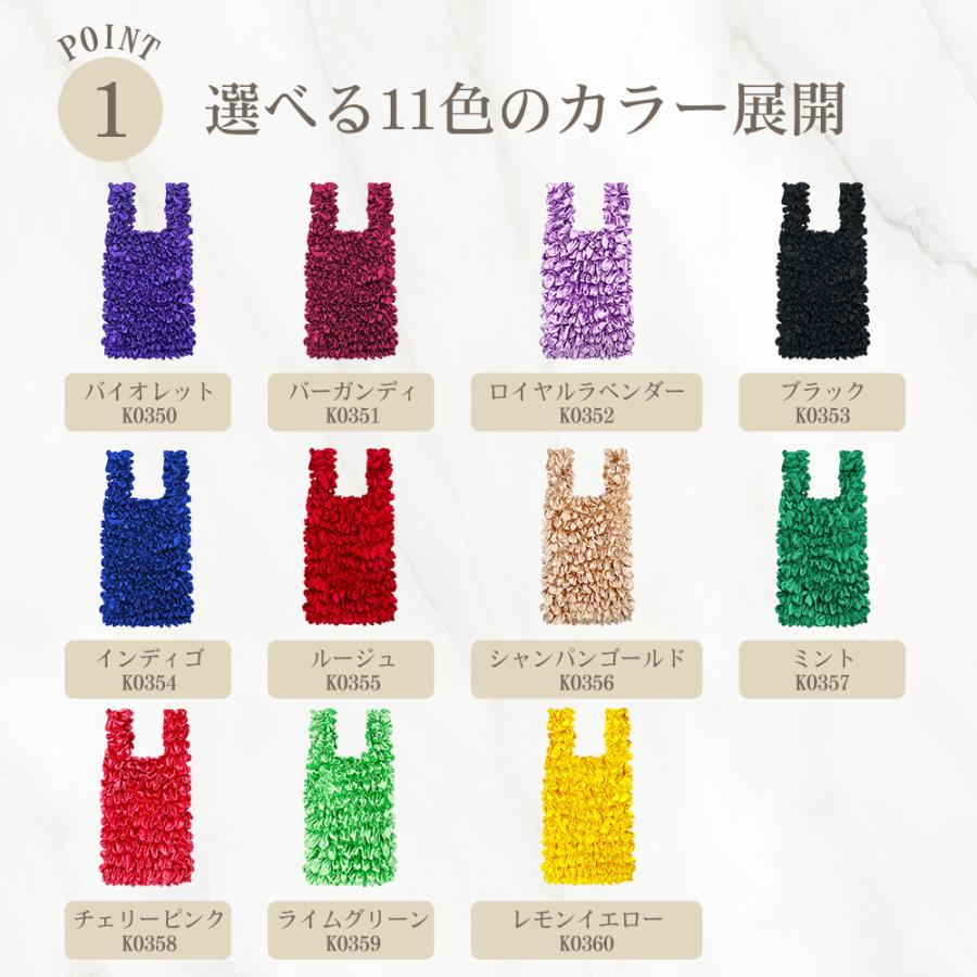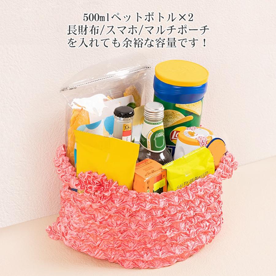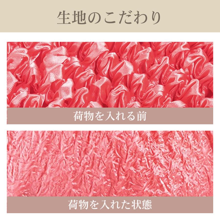 ・絞りの伸縮性で、入れるものに応じて生地が伸び縮み自在になります。