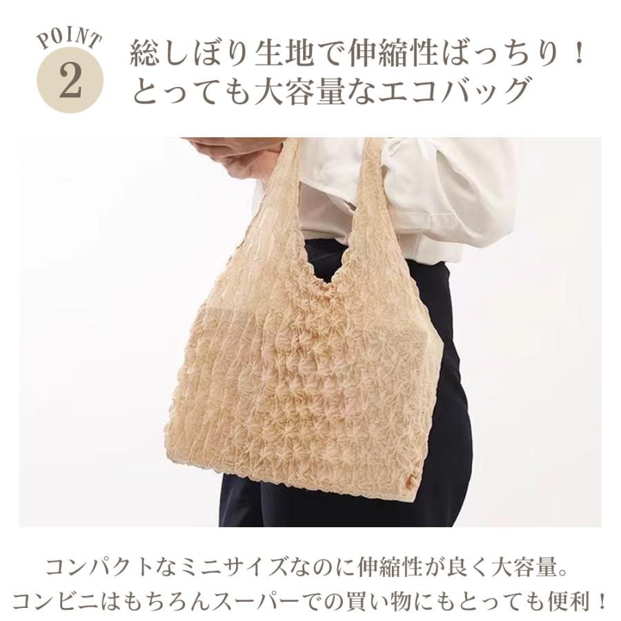 エコバッグ コンパクト トートバッグ 畳まず収納トートバッグ 11色 大容量 エコ お買い物袋 くしゅくしゅ ポップコーンバッグ