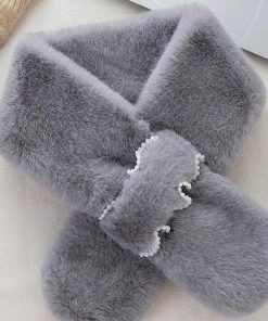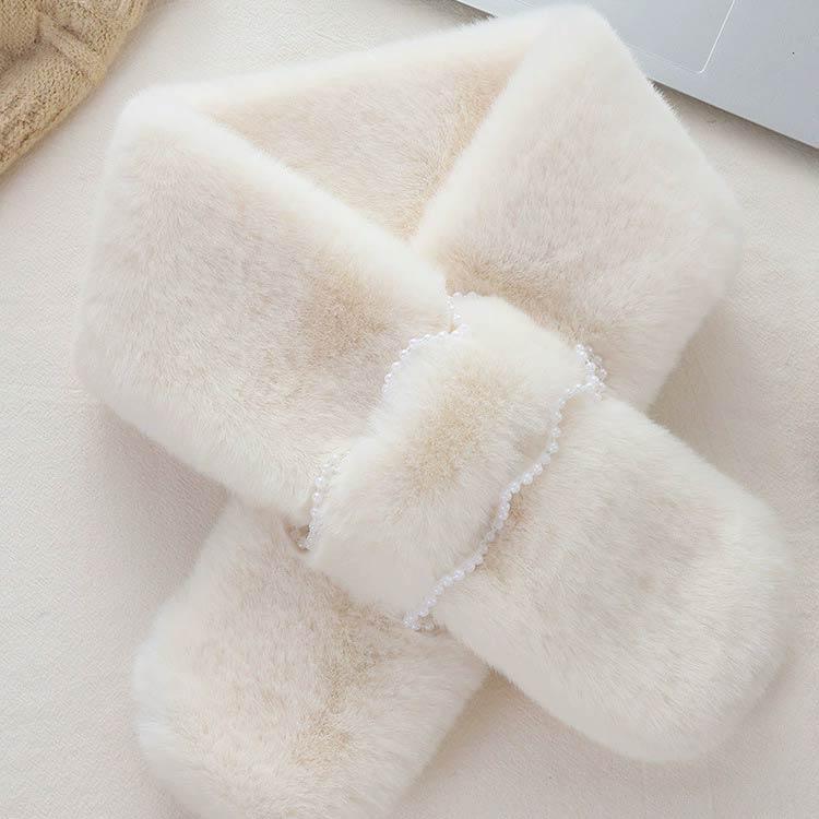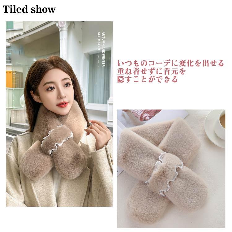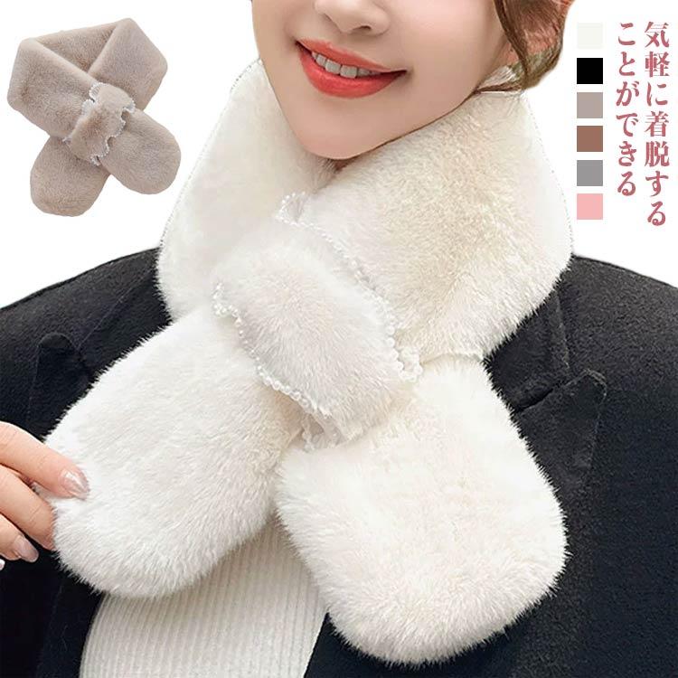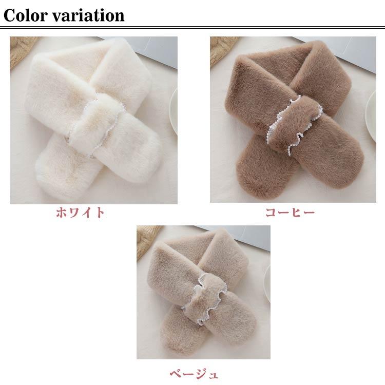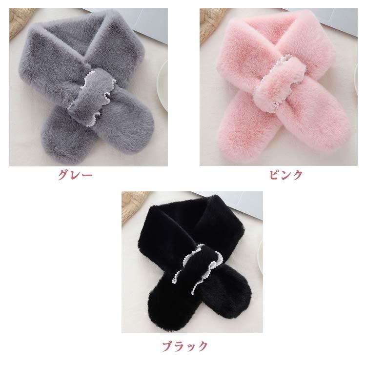 エコファー ビジュー レディース パール ティペット ストール 白 マフラー きれいめ おしゃれ フェイクファー ファーマフラー ファー ファーマフラ