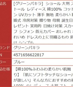 ショール 大判 ストール レディース 綿100% コットン UVカット 薄手 無地 柔らかい 結婚式 冷房対策 贈り物 母親(ブルー)