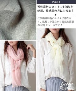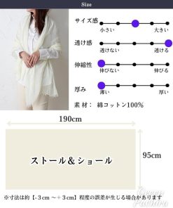 「綿100%ふわふわ柔らかい肌触り」「肌にソフトタッチなショールが欲しい」そんな方におすすめの綿100% のレディース 大判 ストールです。