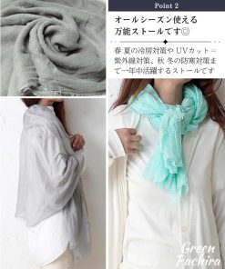 春 夏の冷房対策や UVカット=紫外線対策、秋 冬の防寒対策まで一年中活躍する大判ショールです。