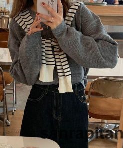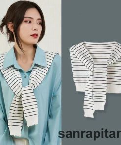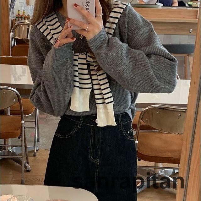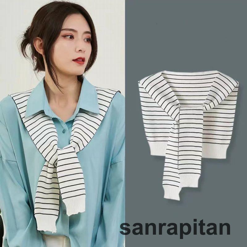 ショール 肩掛け ニット 単品 レディース 女性 カーディガン風 プロデューサー巻き風 マフラー ストール レイヤード風 フェイクカーディガン 柄物