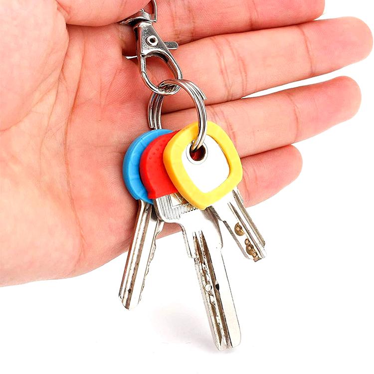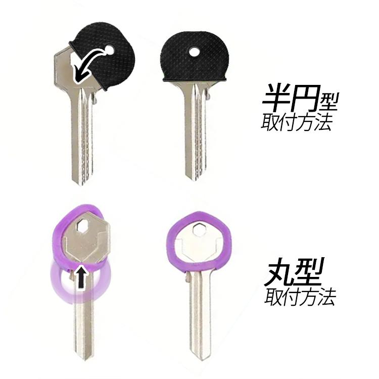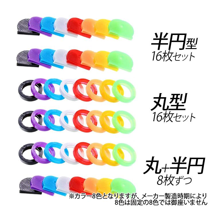 シリコンキーカバー16枚セット キーキャップ ラウンドキーキャップ 円形 半円形 キー識別 整理 目印 色分け 鍵キャップ 鍵番号隠し 防犯対策 通し穴付 KEYSC16S