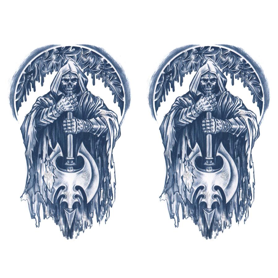 ジャグアタトゥー タトゥーシール 2週間で消えるタトゥー ヘナタトゥー 本物志向 死神 骸骨 2枚セット