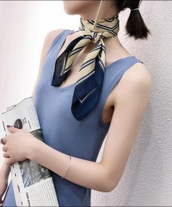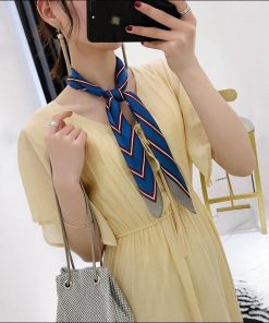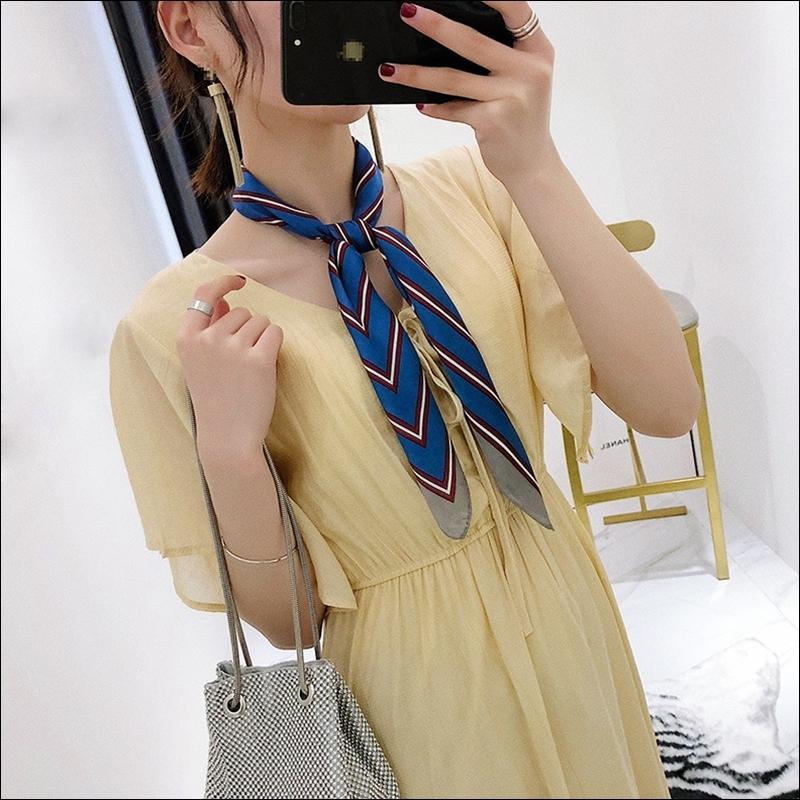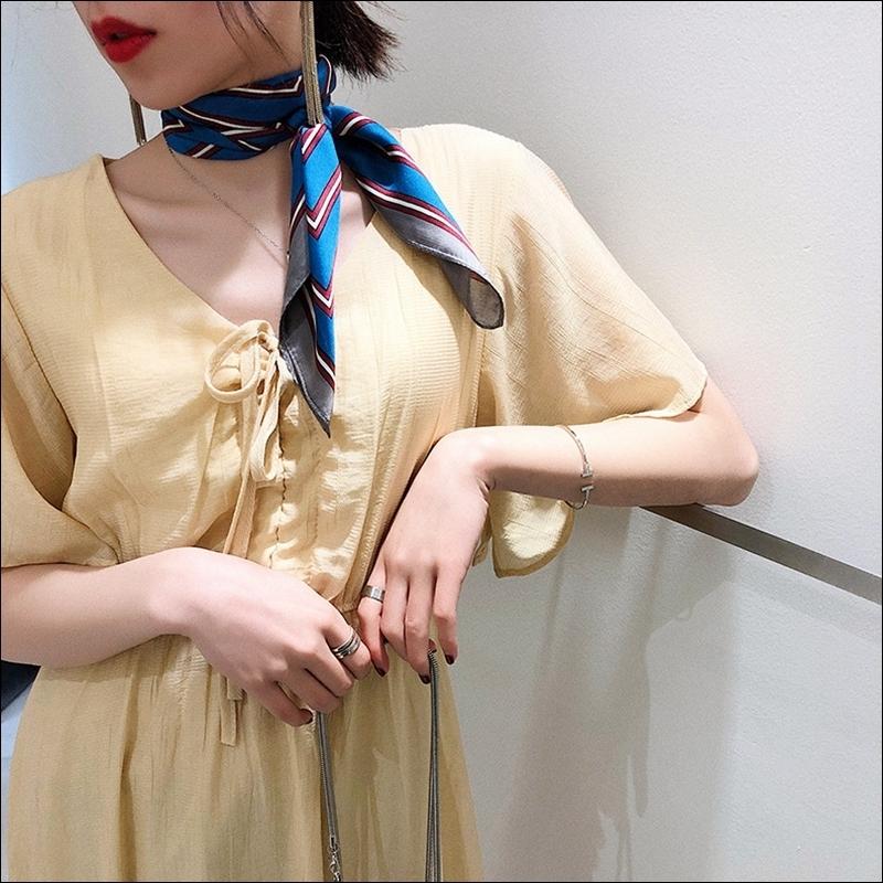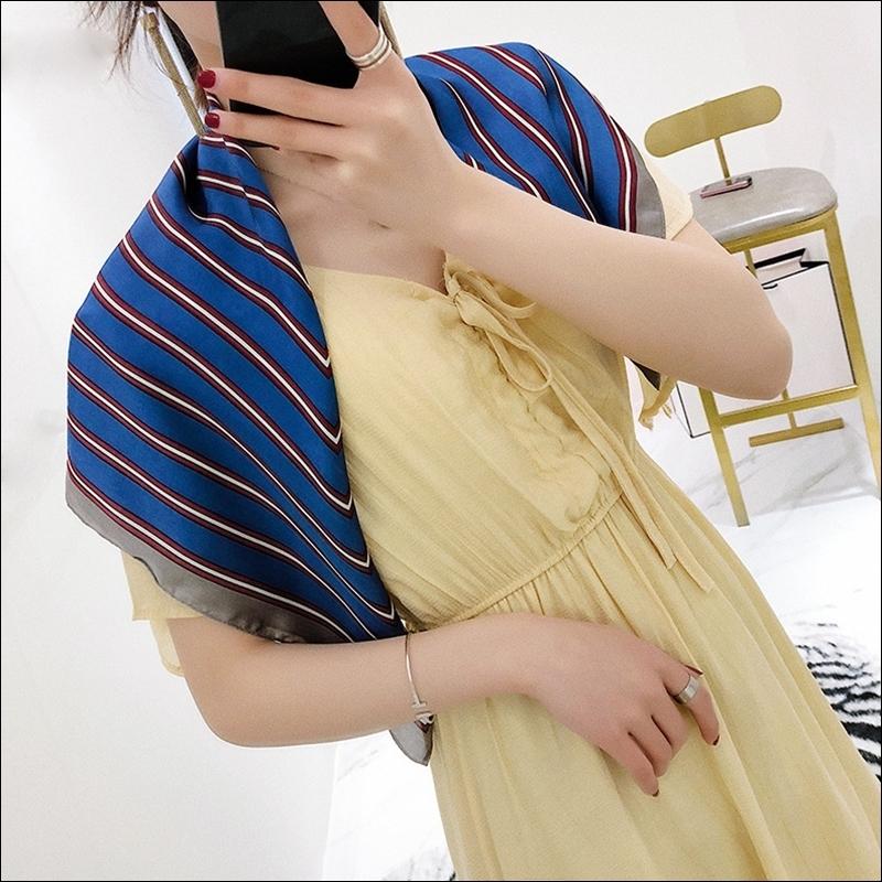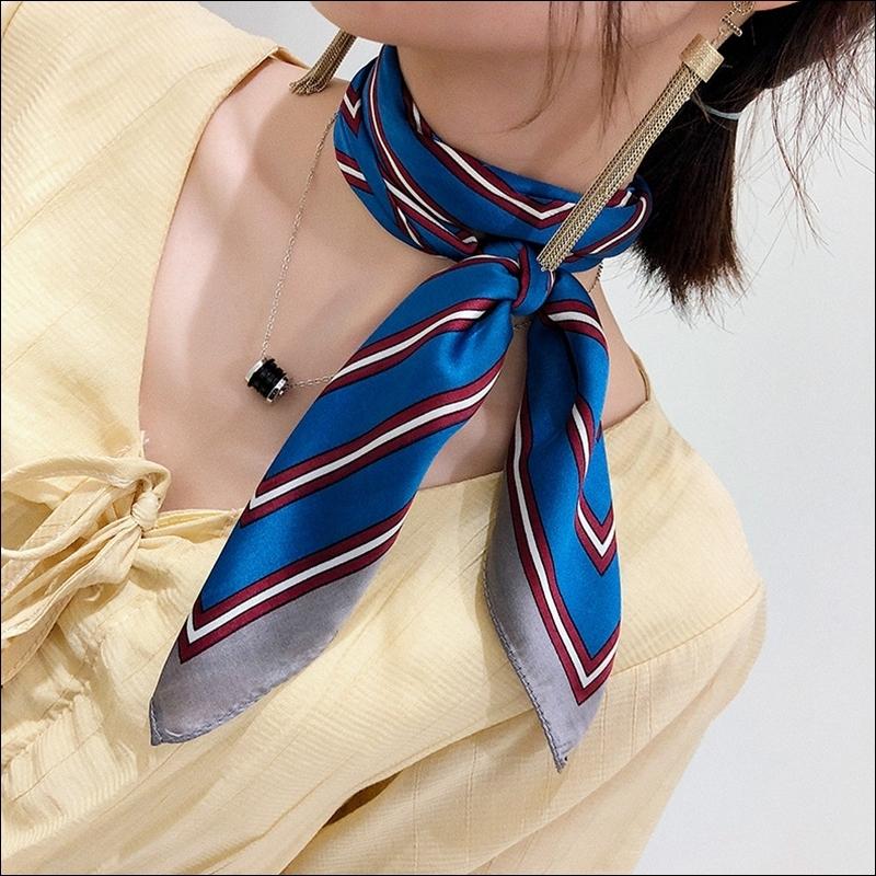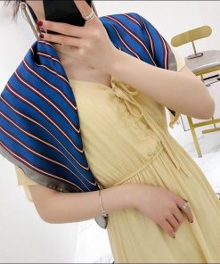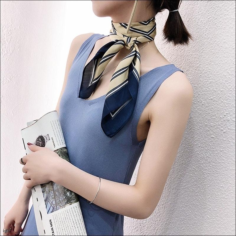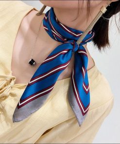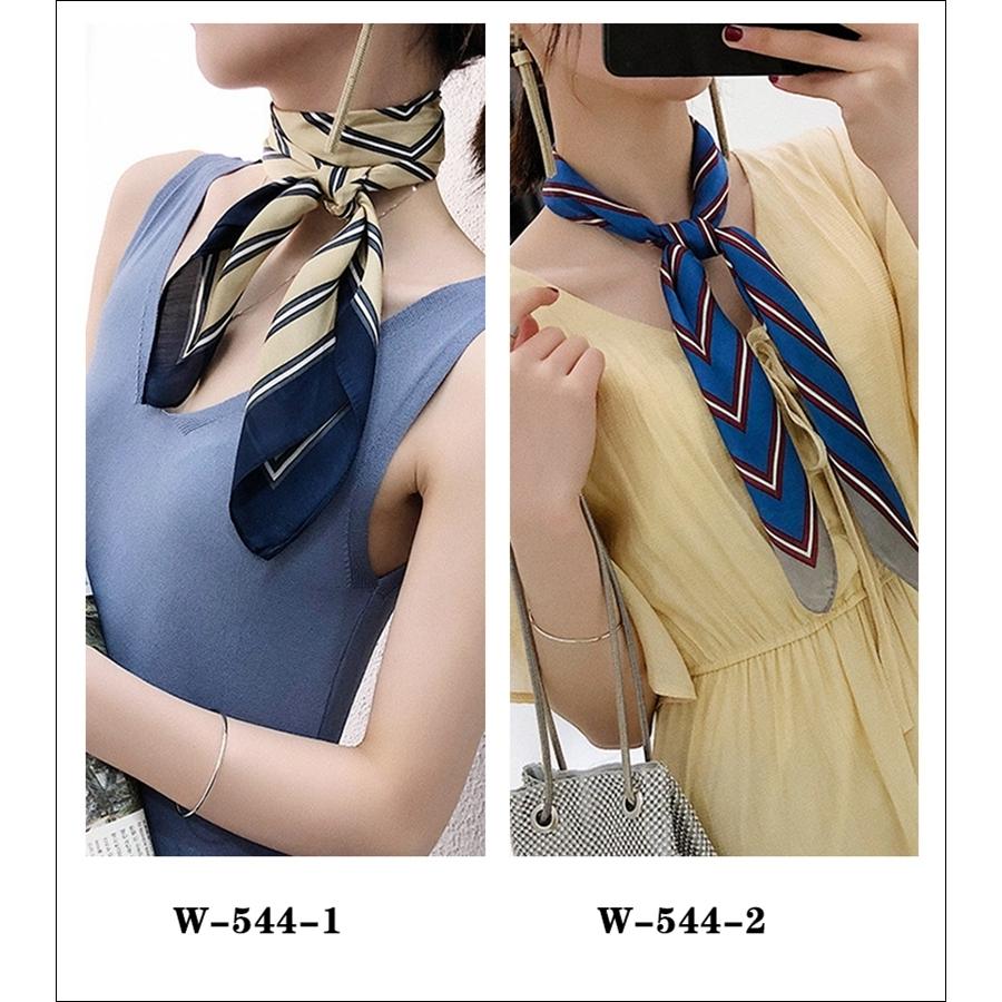 スカーフ レディース scarf 正方形 リボンスカーフ バンダナ バッグ柄 uv 対策 首元 日よけ ストール ストライプ柄 W-544