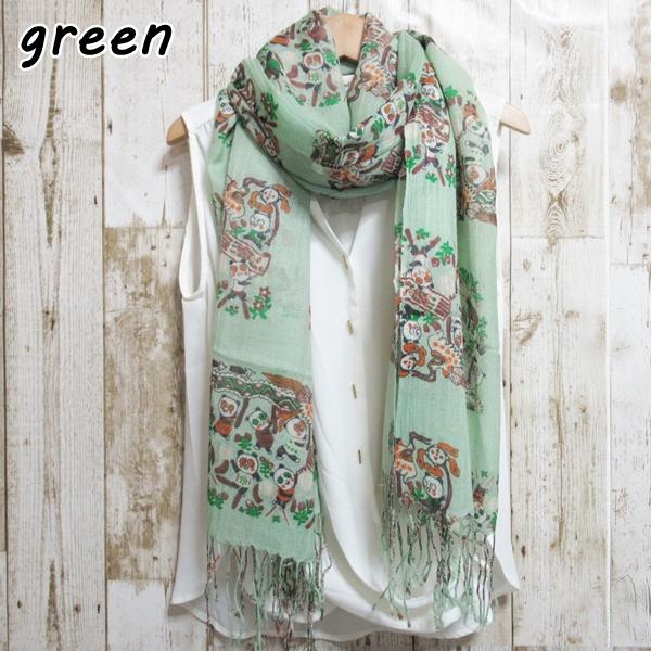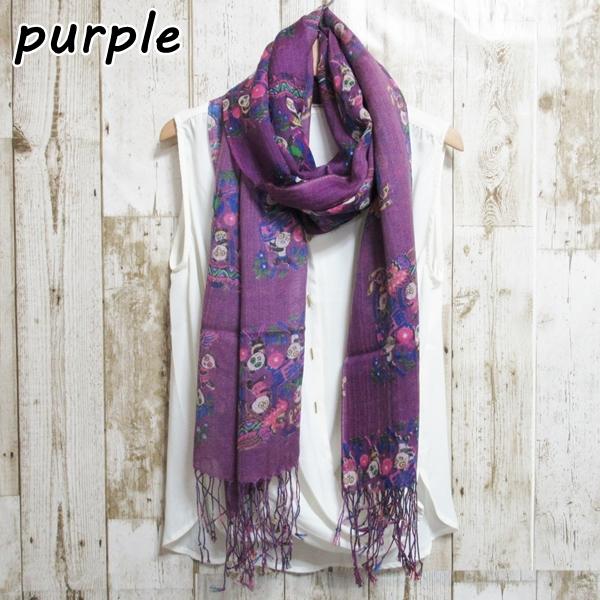 ストール ウールストール 春 夏 春夏 紫外線対策 UV対策 日焼け対策 自然素材 天然素材 パンダ柄 wool ウール ウール100% グリーン 緑 パープル 紫 レディース 母の日 誕生日 プレゼント ギフト