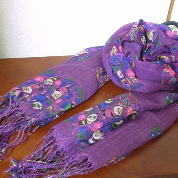 パンダ柄が可愛いウール100%のストール