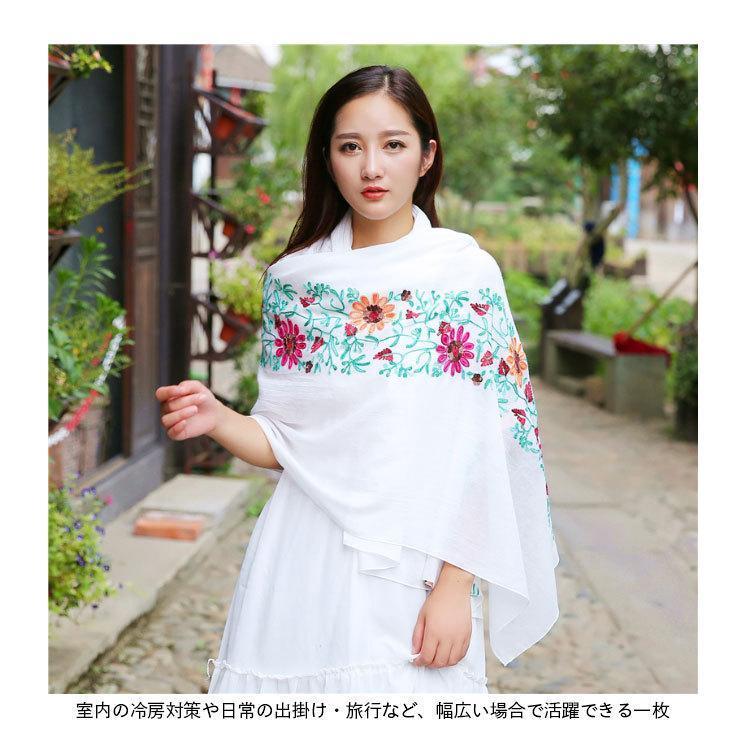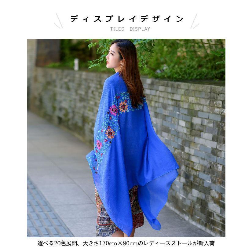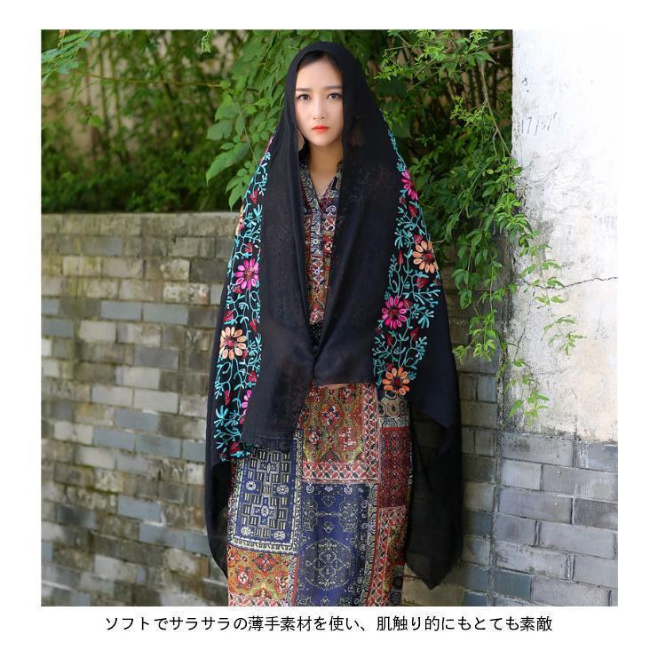 ストール 刺繍 大判 マフラー 秋新作 レディース 肩掛け 薄手 花柄 襟巻き ネックウォーマー エスニック 刺繍マフラー レトロ レジャー 刺繍ストール 大判サイズ 170cm×90cm 冷房対策 冷え対策