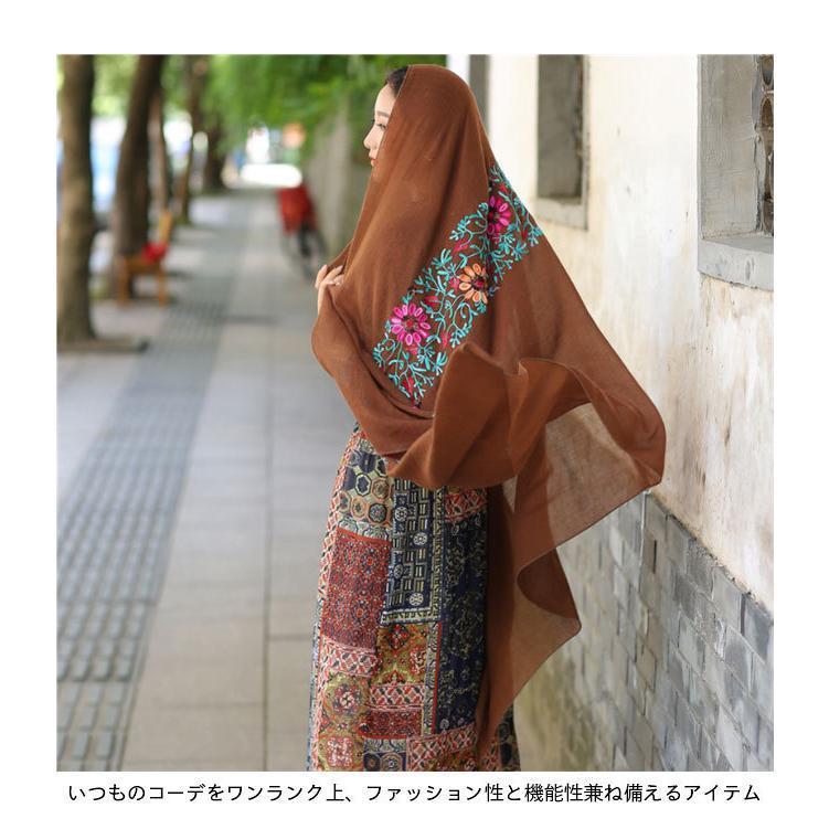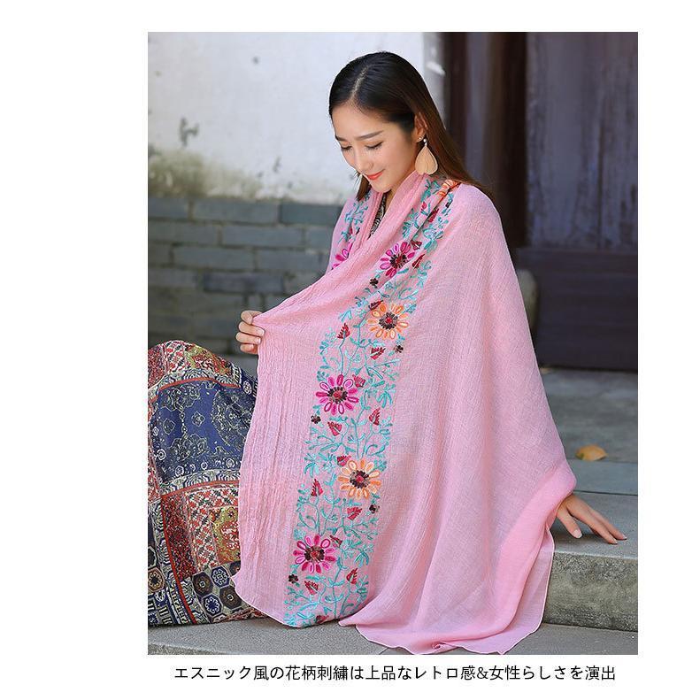 ストール 刺繍 大判 マフラー 秋新作 レディース 肩掛け 薄手 花柄 襟巻き ネックウォーマー エスニック 刺繍マフラー レトロ