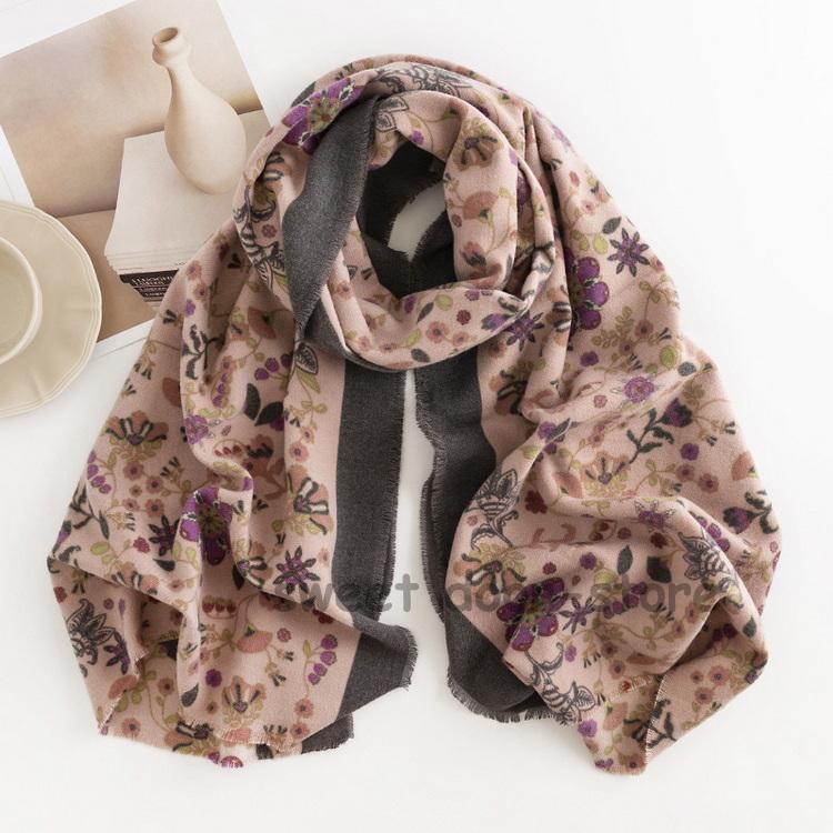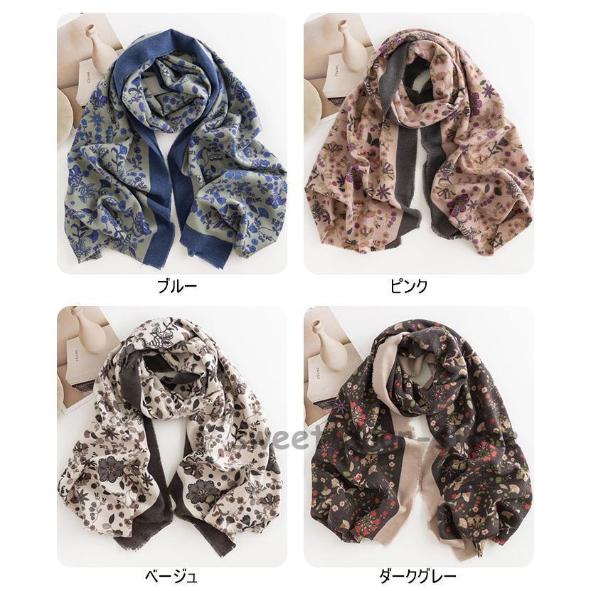 ストール 花柄 大判 カシミヤ タッチ 防寒 肩/ひざ掛け ショール 着物 羽織 おしゃれ レディース 秋冬