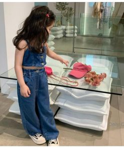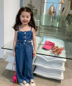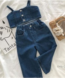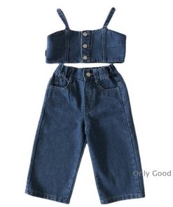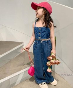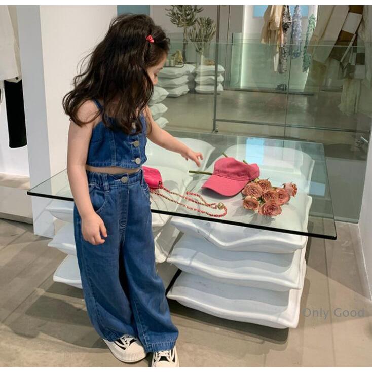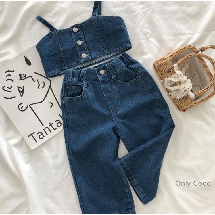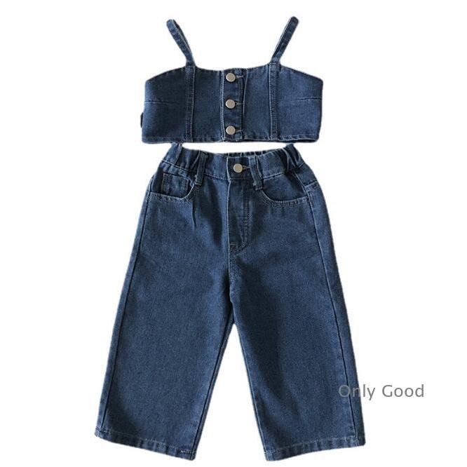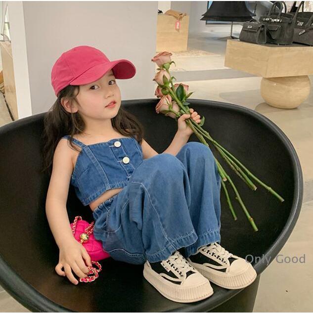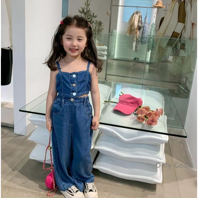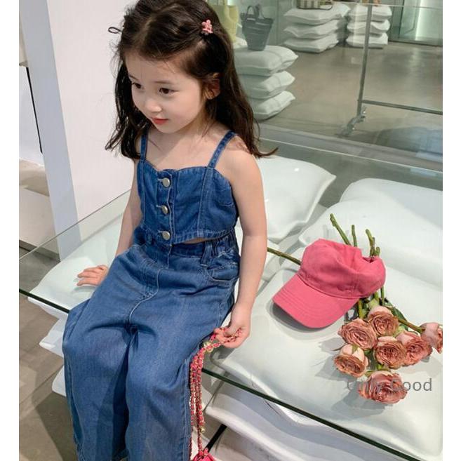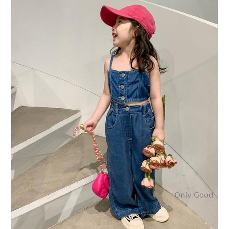 セットアップ キッズ 子供 女の子 ビスチェ ワイドパンツ デニム ジーンズ キャミソール ボトムス 上下 2枚セット 春 夏 カジュアル かわいい
