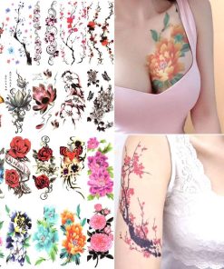 タトゥーシール 花 腕 足 脚 肩 彩り鮮やか 縦長 リアル 防水 長持ち 693