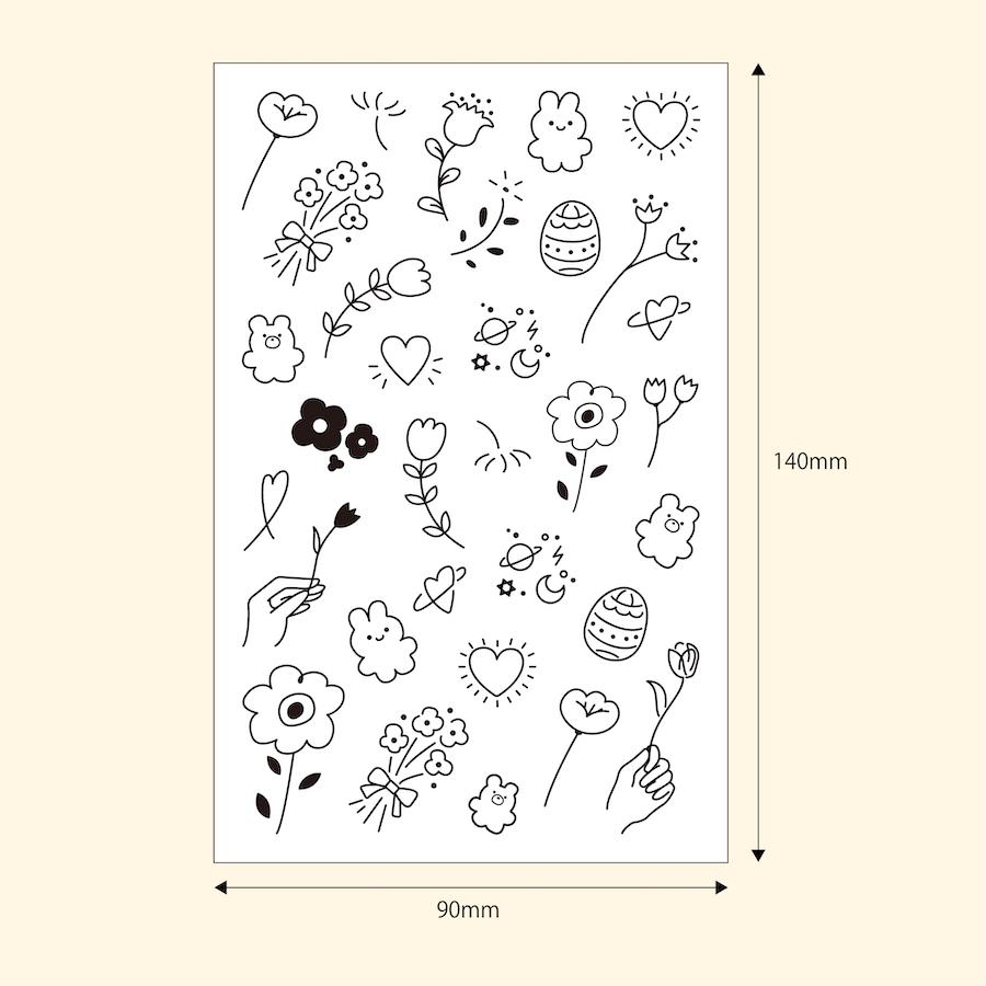 タトゥーシール 花 薔薇 水なしで貼れる 2枚入 韓国 フェイク ボディ シンプル おしゃれ かわいい 肌に貼るシール バラ くま うさぎ 2週間 opt11