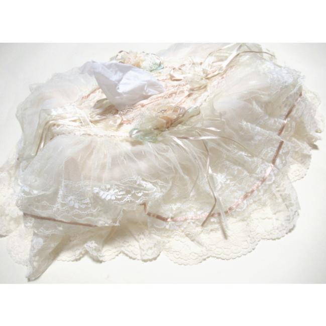 ティッシュボックスカバー ベージュ 長めのフリルが可愛い、メルヘンチックなティッシュボックスカバー