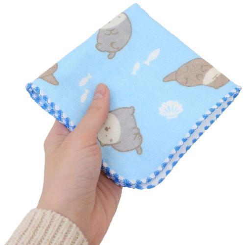 ハンドタオル なんでもいきもの ガーゼミニタオル ラッコとカワウソ