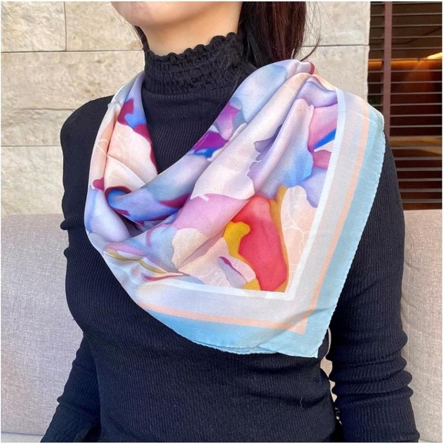 バルサンティ スカーフ レディース シルク100% 大判 85×85 正方形 イタリア製(アイリスペールブルー, Free Size)