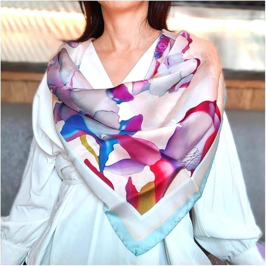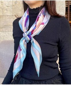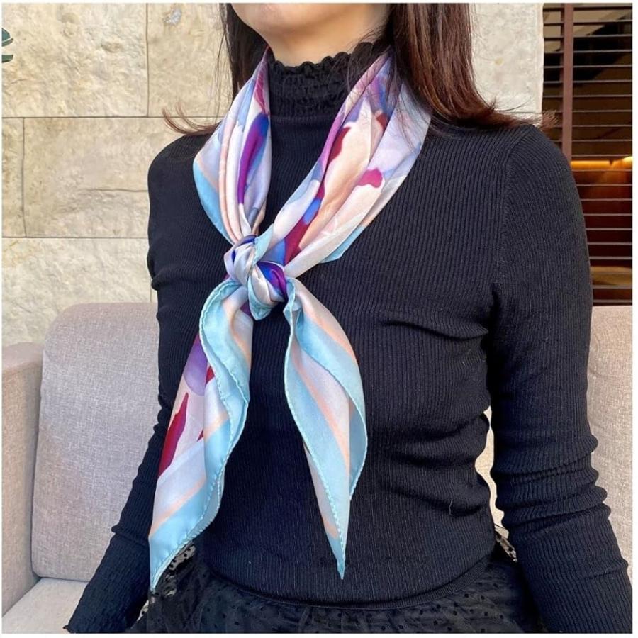 巻き方によって、エレガントにもカジュアルにも見せることができるのが、シルクスカーフの魅力です。