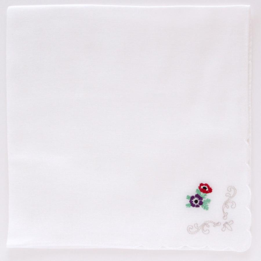 ガーゼに誕生花の刺繍を施したエレガントなハンカチーフです。