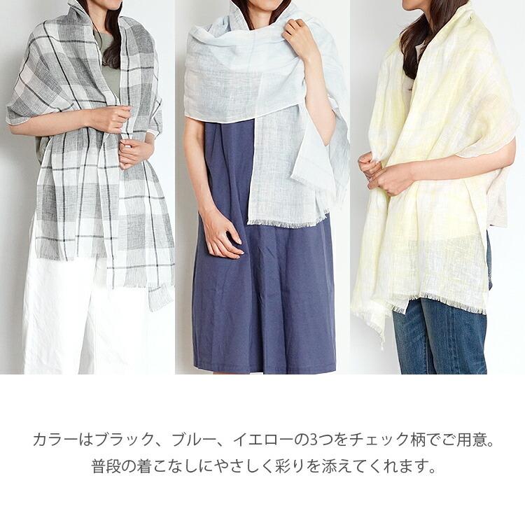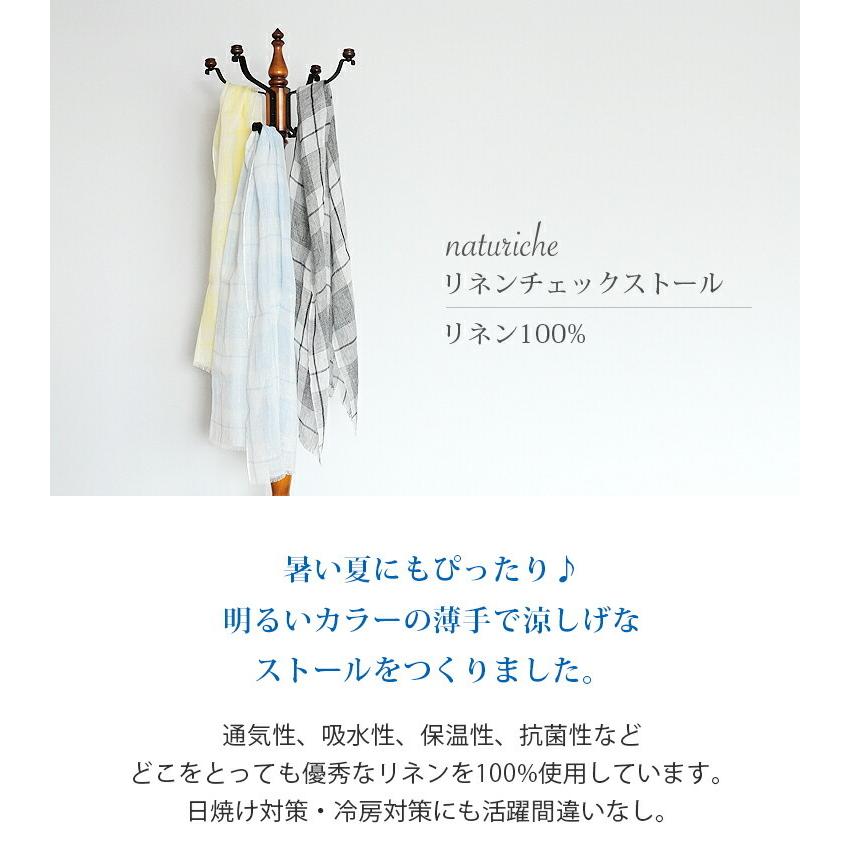 リネンチェックストール リネン100% 日本製 ストール 日焼け対策 春 夏 春夏 薄手 レディース メンズ リネン 麻 大判ストール