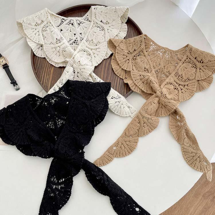 レディース 重ね着 つけ襟 三角ストール レイヤード ショール レース 付け襟 スカーフ ニットショール 差し込み シンプル オシャレ