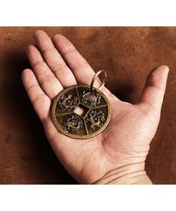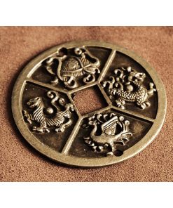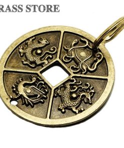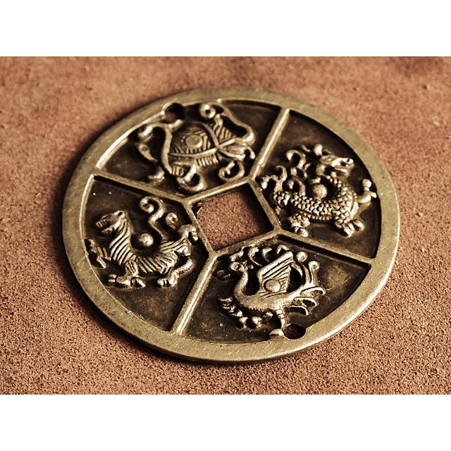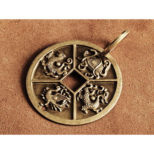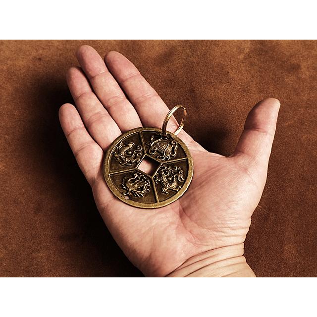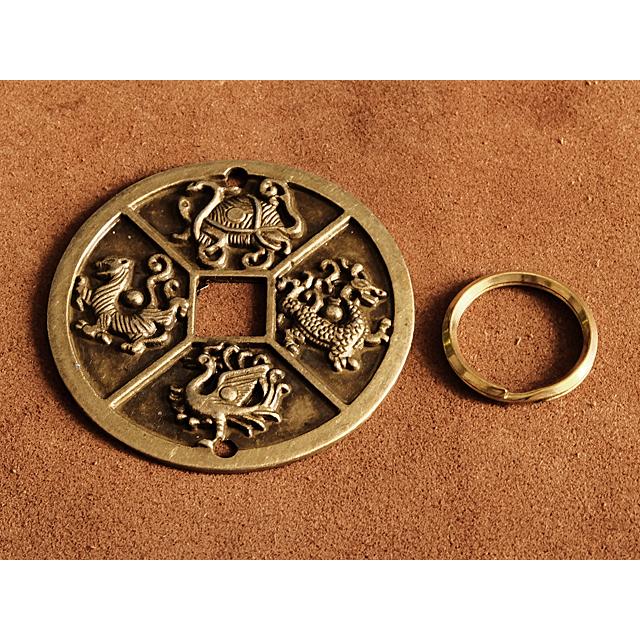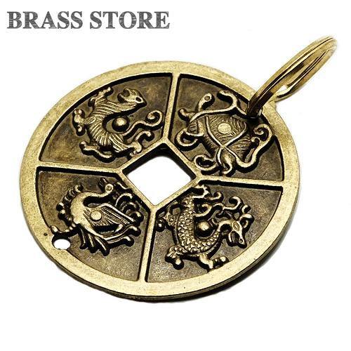 真鍮 キーホルダー(四神)コイン ブラス 青龍 白虎 朱雀 玄武 龍 亀 蛇 キーリング チャーム フィギュア 二重カン キーチェーン