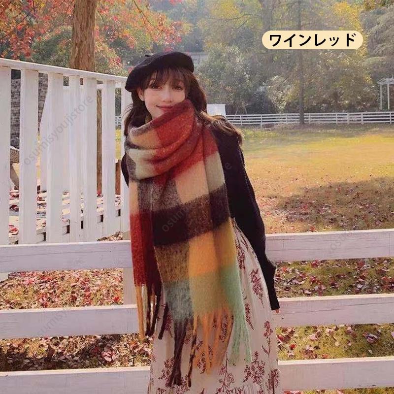 送料無料 マフラー ストール 秋冬 ショール冬 レディース 大判 36*218cm 保温 暖かい 厚く 冷房対策 格子縞 誕生日 プレゼント 女子高生 女の子 おしゃれ