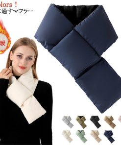 送料無料 穴に通すマフラー 軽量 ティペット 収納ポケット付き マフラー シンプル ネックウォーマー 無地 軽い 防寒 差し込み 通勤 通学 ふわふわ