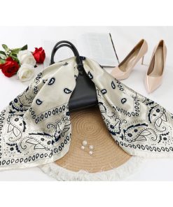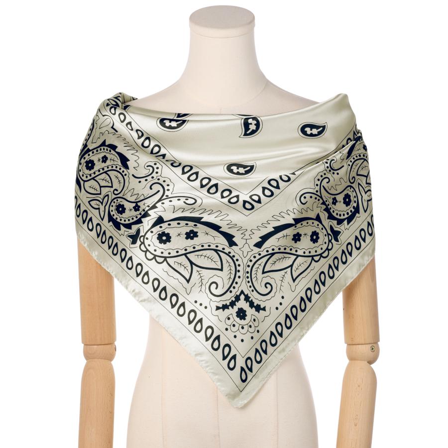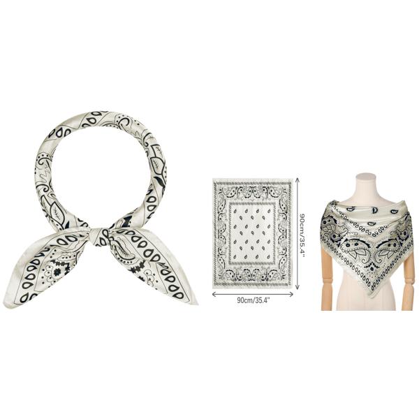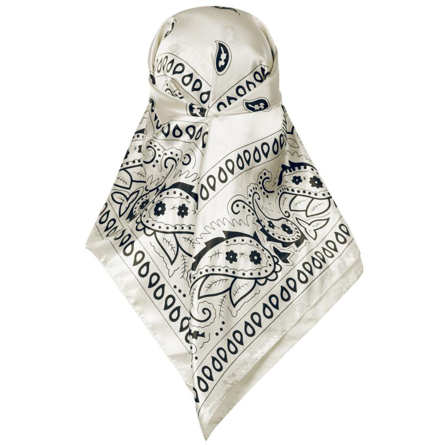 ??カラー: ブラック、ホワイト、キャラメル、ネイビーブルー。サイズ: 90x90cm(長さx幅)。普段はネッカチーフとして、夜寝るときに髪を巻くのに十分な大きさで、ショールやバンダナクロップトップとしてもお使いいただけます。