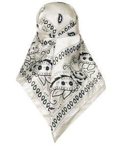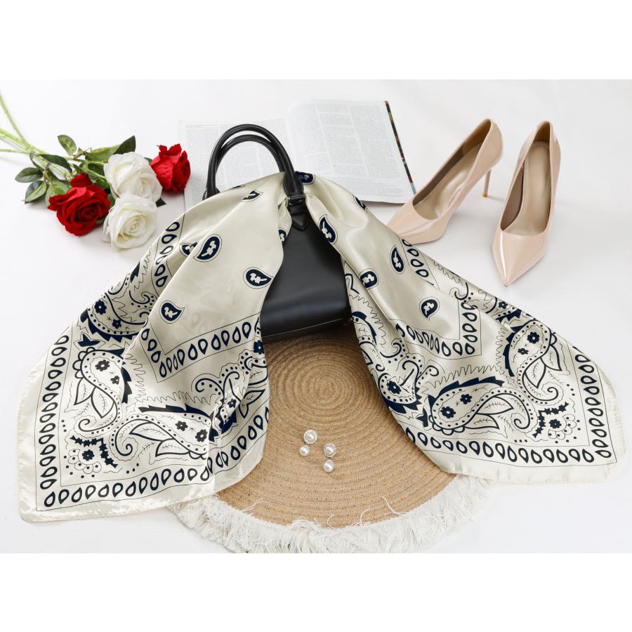 Elerevyo スクエアスカーフ 女性 サテン 90x90cm シルクのような ヘアスカーフバンダナ 白
