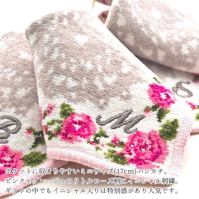 日本製シェニール織イニシャルミニハンカチをセット。