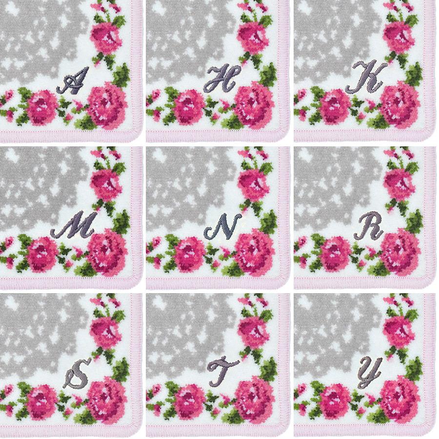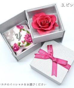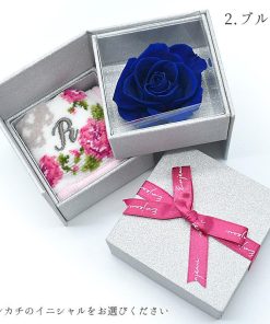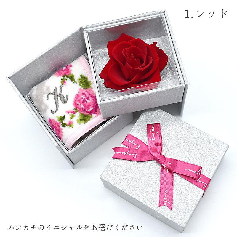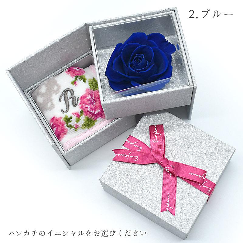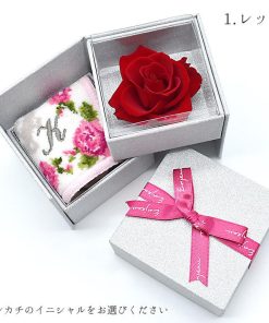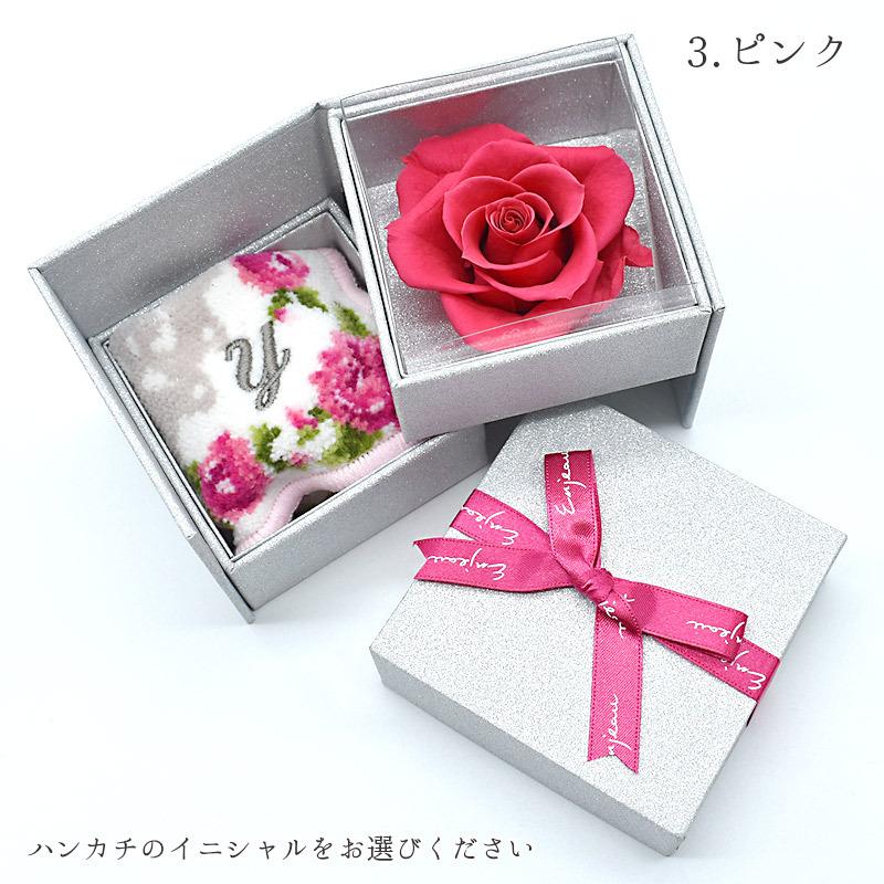 Enjeau ギフト 日本製 選べる イニシャルハンカチ 一輪 バラ プリザーブドフラワー リトルローズ アーンジョー プレゼント