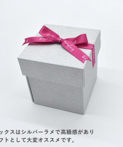 高級感のあるシルバーのラメが上品に輝くギフトボックスに