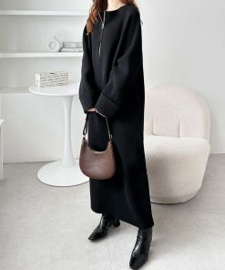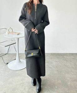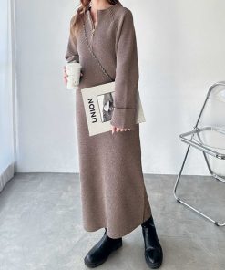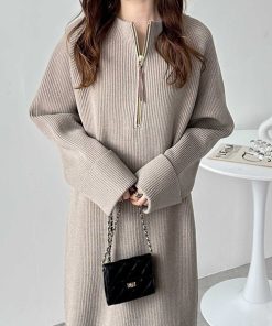 商品名:【新色追加/S-LLサイズ】前後2WAYハーフジップニットワンピース