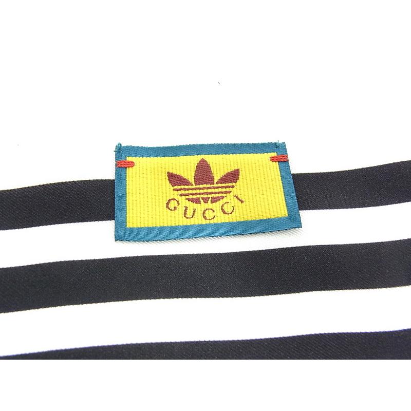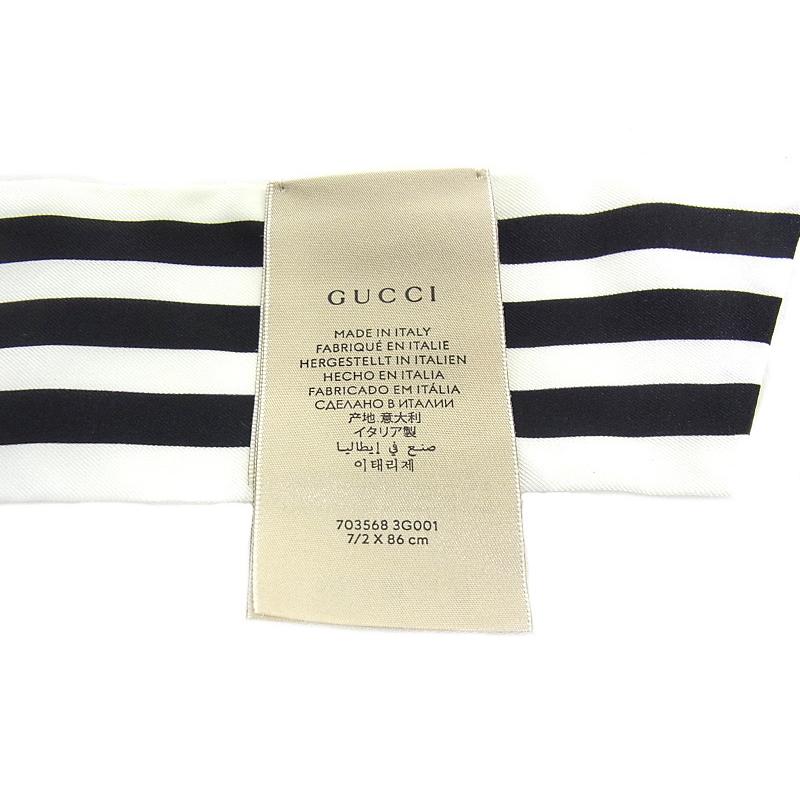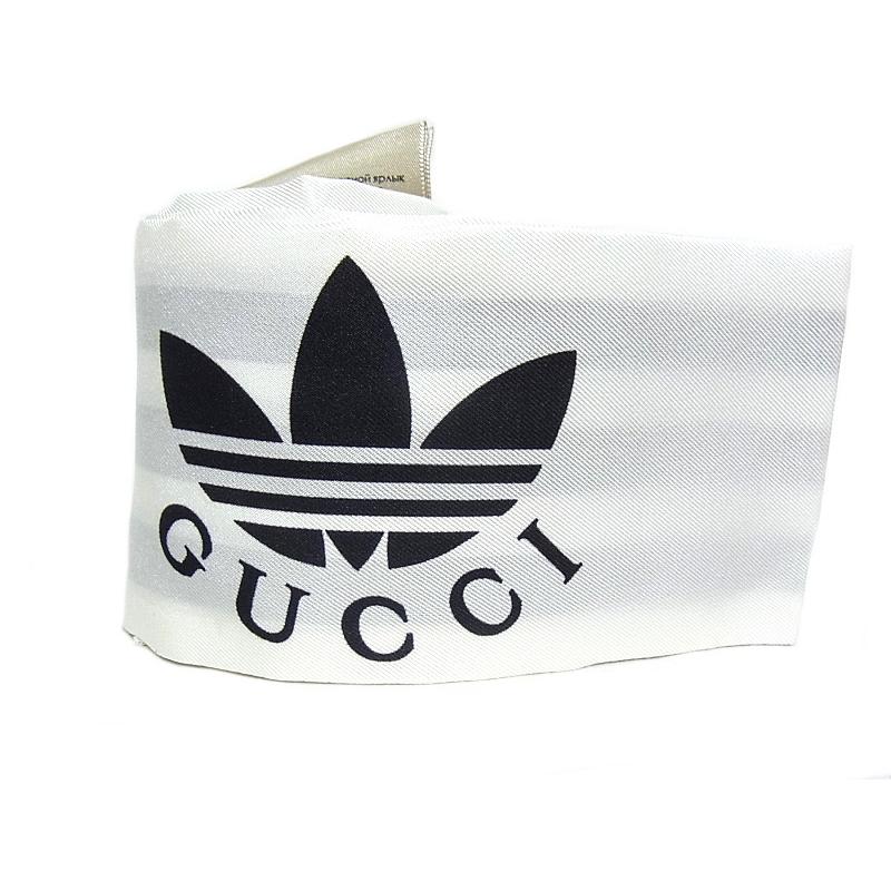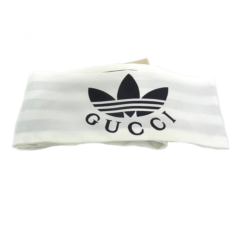 GUCCI グッチ GUCCI ネックボウ スカーフ アディダスコラボ ロゴ ストライプ 703568 3G001 シルク 白/黒 【中古】【程度A】【美品】