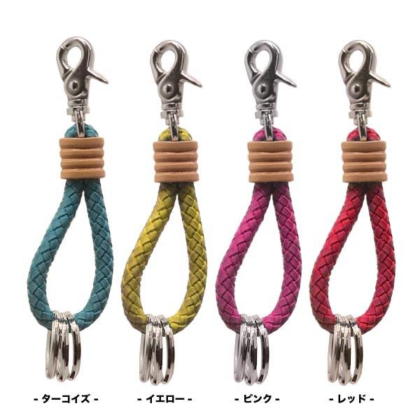 4本の革ひもを編みこんでおり、留め具部分はハンドステッチ(手縫い)で仕上げております。