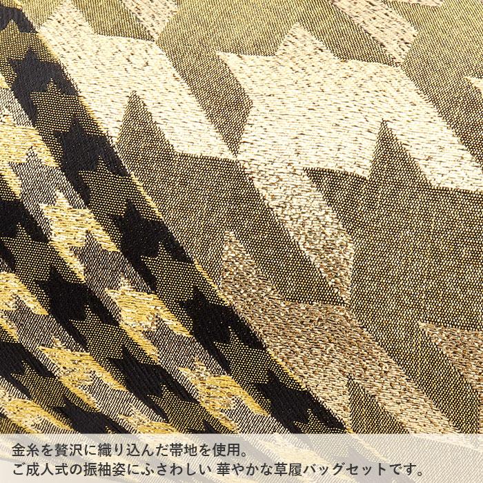 振袖 草履 バッグ セット 成人式 草履バッグセット 振袖用 フリーサイズ 金 黒 千鳥格子 帯地 エナメル 幅広 2枚芯 EVA素材 痛くない 振袖 卒業袴 振り袖 ママ振 おしゃれ はたち ぞうり 草履 草履バック 草履バッグ 着物 M L 小さめフリー