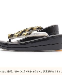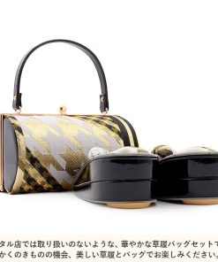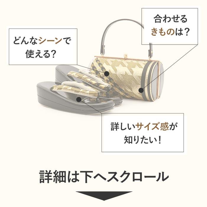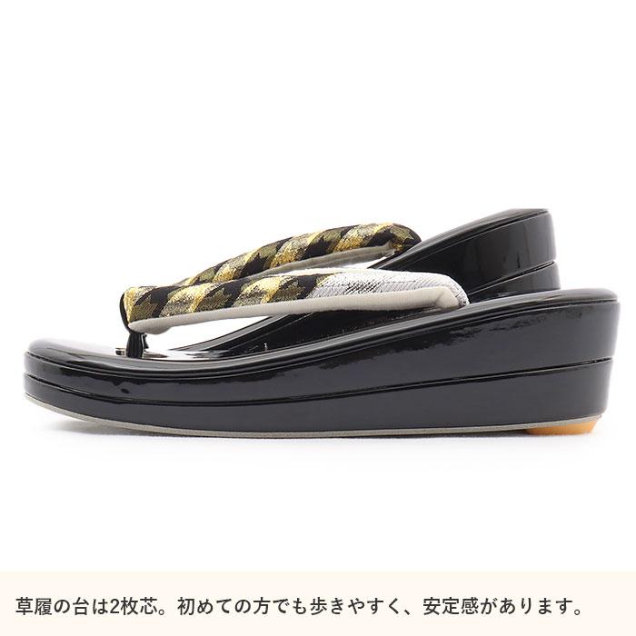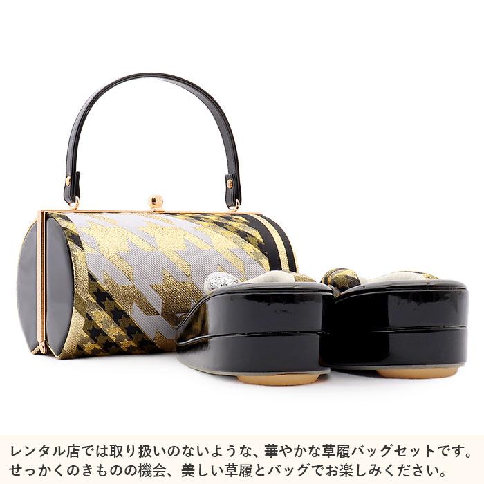 Kisste 振袖 草履 バッグ セット 成人式 草履バッグセット 振袖用 フリー 金 黒 千鳥格子 帯地 エナメル 幅広 2枚芯 EVA素材 POINT