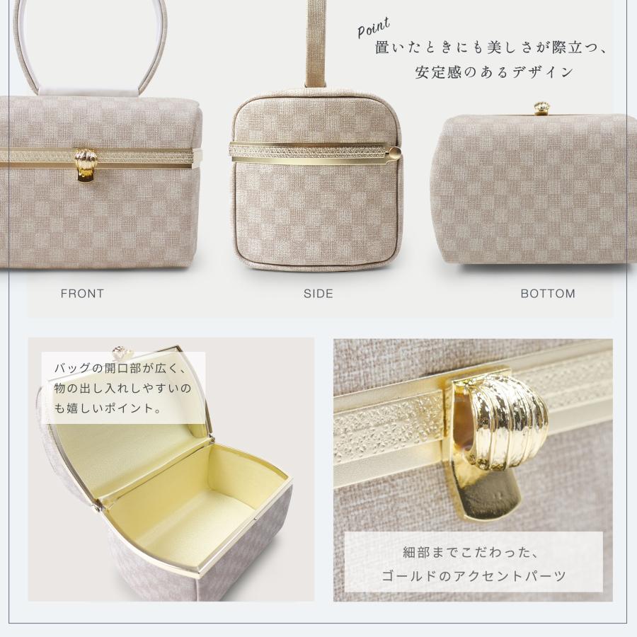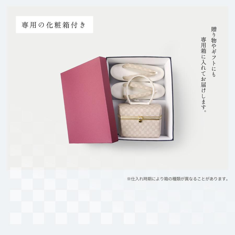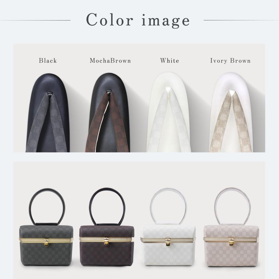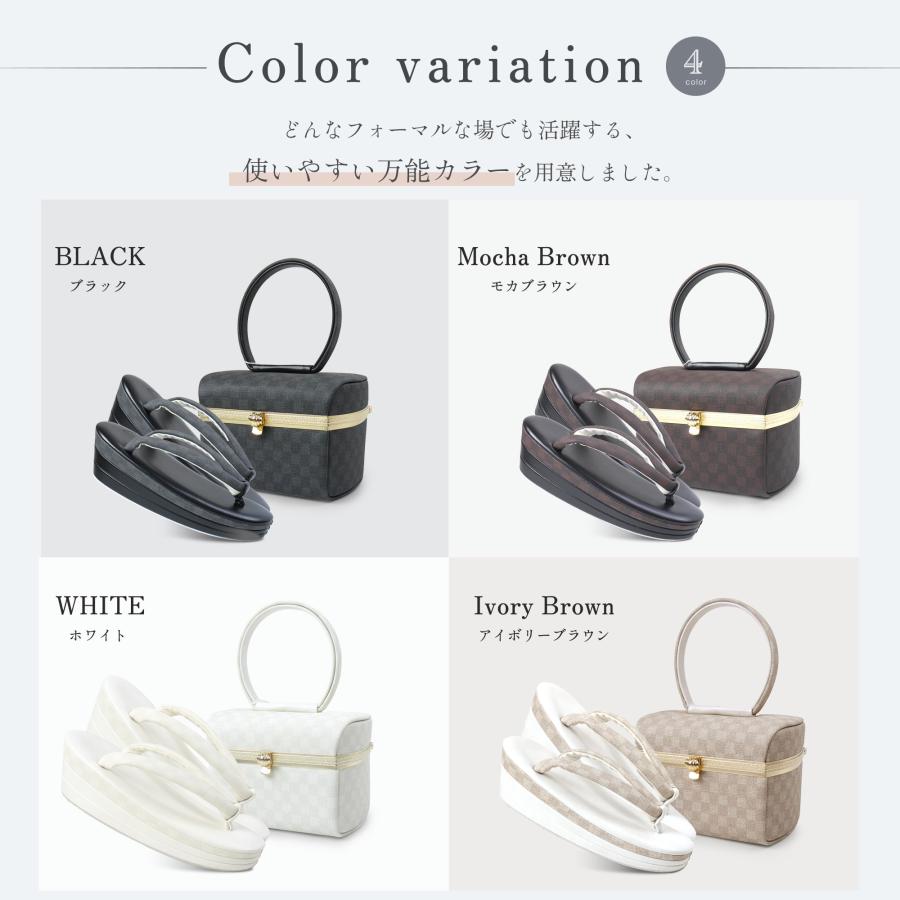 NISHIORI 【10%OFFクーポン配布中】和モダン 市松文様の 草履バッグ 2点セット 選べる4色 3枚芯 ボックスデザイン 7.5cmヒール 2枚芯 フリーサイ