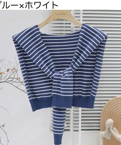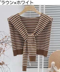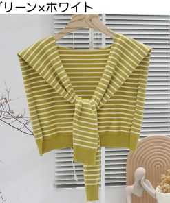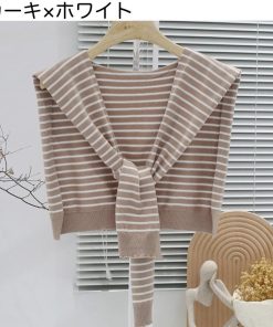 plusnao ストール ショール 肩掛け ニット 羽織り カーディガン風 フェイクカーディガン レディース 女性 ボーダー柄 縞 プロデューサー巻き風 冷え予防 か