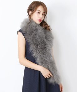 巻いても羽織っても大ボリュームのラムファーマフラーです。