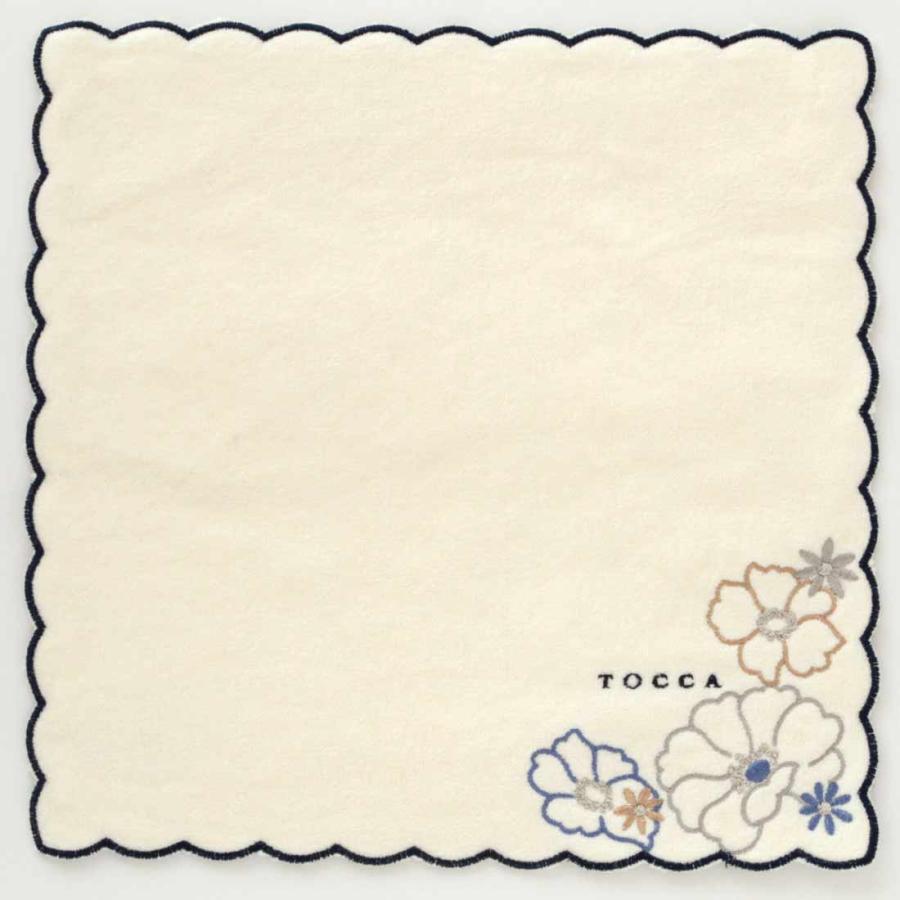 TOCCA トッカ 大判 タオルハンカチ(28cm)花柄刺繍 アイボリー